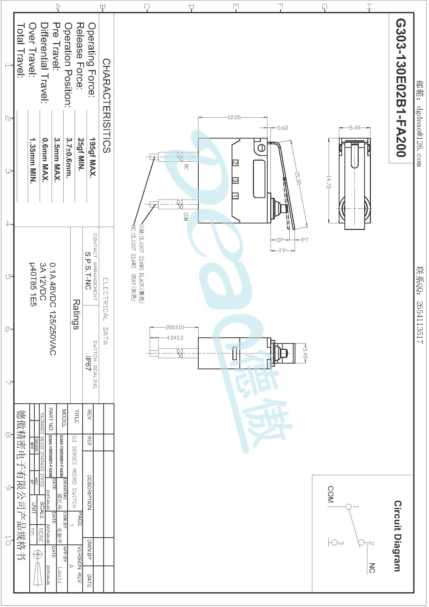 產品類別:小型防水系列微動開關